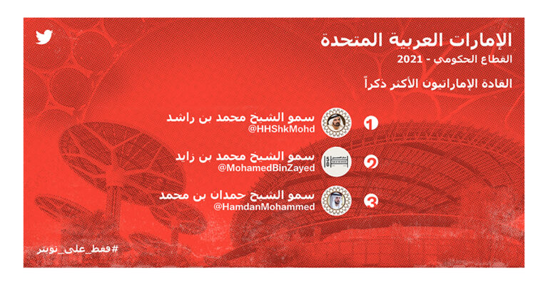 وكشف تويتر أن الموضوعات المرتبطة بالحكومة كانت من ضمن أكبر المحادثات في دولة الإمارات في 2021 والتي تصدرها صاحب السمو الشيخ محمد بن راشد آل مكتوم (@HHShkMohd).