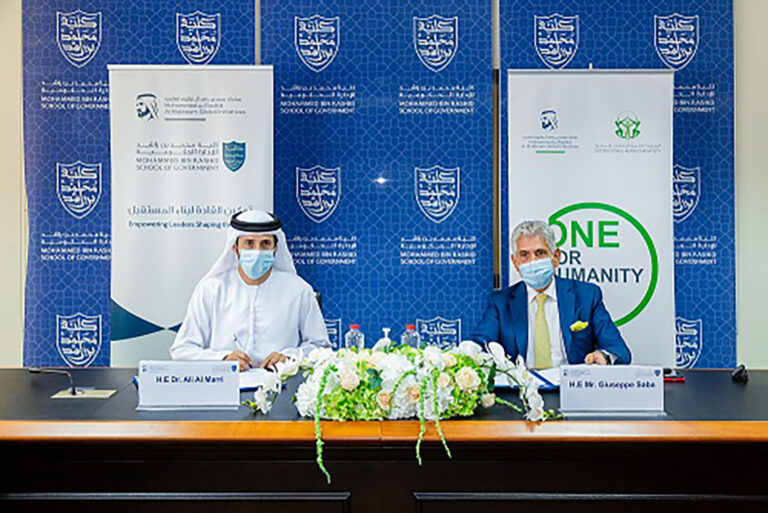 ووقع الاتفاقية في مقر كلية محمد بن راشد للإدارة الحكومية كل من: سعادة الدكتور علي بن سباع المري، الرئيس التنفيذي لكلية محمد بن راشد للإدارة الحكومية، وسعادة جيوسيبي سابا، المدير التنفيذي للمدينة العالمية للخدمات الإنسانية.