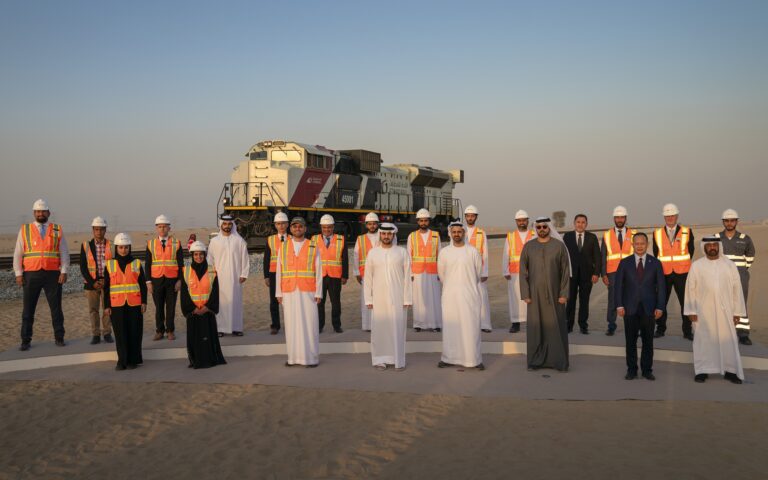 مكتوم بن محمد بن راشد وذياب بن محمد بن زايد يشهدان ربط إماراتي أبوظبي ودبي بخط قطار مباشر ضمن شبكة “قطار الاتحاد”