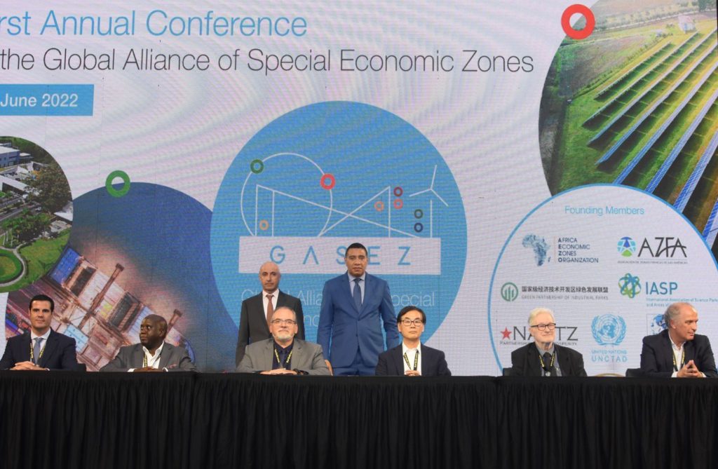 وجاء تدشين التحالف العالمي للمناطق الاقتصادية الخاصة خلال حفل رسمي أقيم ضمن فعاليات المعرض والمؤتمر الدولي السنوي للمنظمة بحضور، فخامة آندرو مايكل هولنس رئيس وزراء جامايكا، وسعادة الدكتور محمد الزرعوني، رئيس المنظمة العالمية للمناطق الحرة، وعددٍ من الأعضاء المؤسسين للتحالف. ويضم التحالف كلا من الأونكتاد، والمنظمة العالمية للمناطق الحرة، ومنظمة المناطق الاقتصادية الأفريقية، ورابطة مناطق التجارة الحرة للأمريكتين، والرابطة الدولية لمجمعات العلوم، والرابطة الوطنية لمناطق التجارة الحرة وسلطة المنطقة الاقتصادية الفلبينية والاتحاد العالمي للمناطق الاقتصادية الحرة والخاصة.