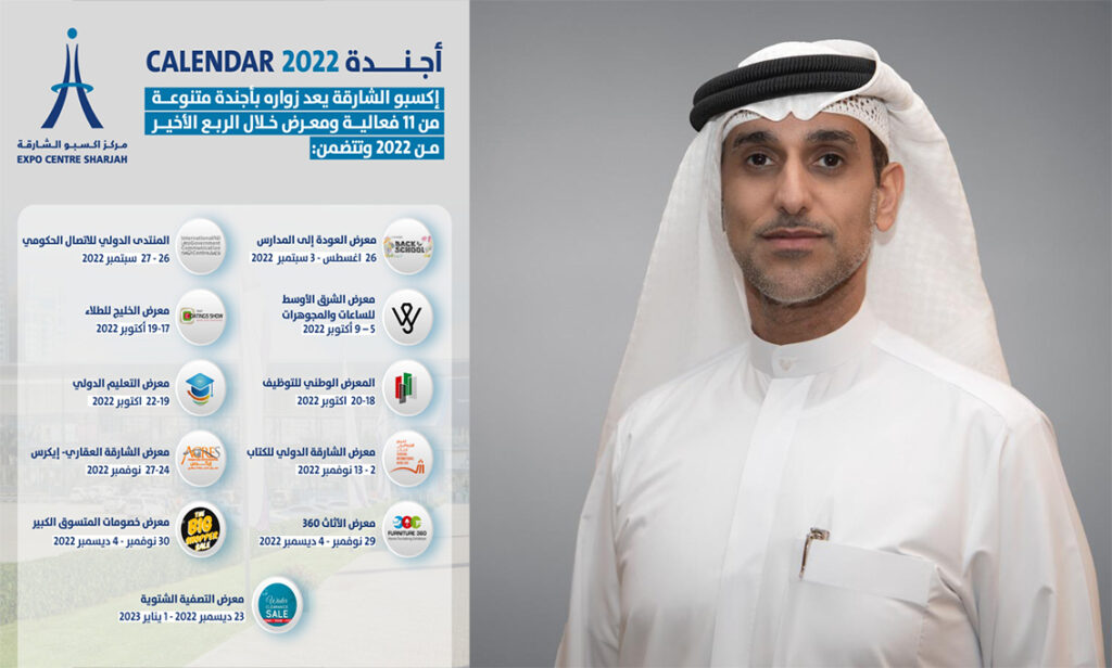 تترقب إمارة الشارقة موسماً حافلاً بالمعارض الكبرى والفعاليات المحلية والإقليمية والدولية التي سينظمها ويستضيفها مركز إكسبو الشارقة خلال الفترة المقبلة من عام 2022، حيث تضم أجندة الفعاليات 11 معرضاً اقتصادياً وتجارياً وثقافياً، والتي من المنتظر أن تستقبل طيفاً واسعاً من الشركات والزوار والخبراء من مختلف دول العالم، بما يرسخ مكانة الإمارة كجهة إقليمية ودولية رائدة للمعارض والمؤتمرات.