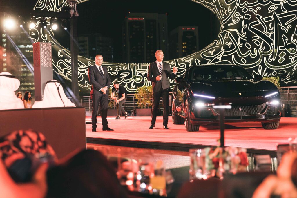 دبي؛ 19 أكتوبر 2022 – كشفت فيراري عن إطلاق سيارة بوروسانجوي في أبراج الإمارات الشهيرة في قلب دبي خلال عطلة نهاية الأسبوع. وتُعد هذه السيارة أول طراز مزوّد بأربعة أبواب وأربعة مقاعد من سيارات العلامة الإيطالية على الإطلاق. وتشهد المنطقة دخول السيارة الجديدة إلى أسواقها للمرة الأولى بعد العرض العالمي الأول في 13 سبتمبر الماضي، ما يعكس مدى أهمية المنطقة بالنسبة لبرنامج المبيعات العالمي الذي تديره فيراري.