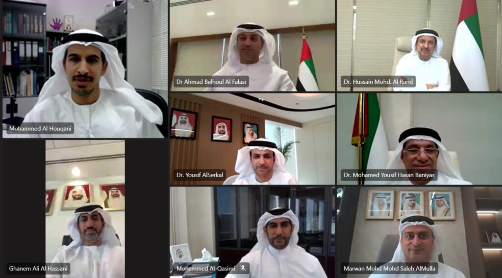 العين – 4 نوفمبر 2022: عقد مجلس إدارة المعهد الوطني للتخصصات الصحية إجتماعاً برئاسة معالي الدكتور أحمد بالهول الفلاسي – وزير التربية والتعليم،عبر تقنية الاتصال المرئي، بحضور أعضاء المجلس المكون من ممثلي الهيئات الصحية : سعادة الدكتور حسين عبد الرحمن الرند -وكيل الوزارة المساعد لقطاع الصحة العامة، وسعادة الدكتور جمال الكعبي-وكيل دائرة الصحة أبوظبي، وسعادة الدكتور يوسف محمد السركال- مدير عام مؤسسة الإمارات للخدمات الصحية، وسعادة الدكتور مروان الملا -المدير التنفيذي لقطاع التنظيم الصحي في هيئة الصحة في دبي، وسعادة الدكتور محمد يوسف بني ياس -مستشار وزارة التربية والتعليم مدير مفوضية الاعتماد الأكاديمي، والدكتور غانم علي الحساني- رئيس اللجنة العلمية المحلية ومدير التعليم والبحث في مجموعة “صحة”، وجمال عبد السلام – المدير التنفيذي لسلطة مدينة دبي الطبية، والأستاذ الدكتور محمد حسن القاسم -ممثل جامعة الإمارات، وسعادة الدكتور محمد الحوقاني -الأمين العام للمعهد الوطني للتخصصات الصحية.