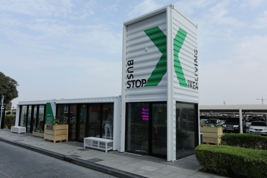 ويتحوّل موقف الحافلات في الفترة بين 8 إلي30 نوفمبر إلى منزل مستدام مصنوع من حاويات الشحن، ويبقى متاحاً للاستخدام من قبل الجميع كموقف للحافلات في حي دبي للتصميم. وتم تصميم هذه الحاوية من قبل خبراء الديكورات الداخلية في ايكيا باستخدام مواد ومنتجات ايكيا فقط بأسلوب يشجع على التواصل بين أفراد المجتمع، حيث يشجّع هذا المنزل على العيش في مجتمع تنتشر فيه ثقافة المشاركة في تناول الطعام وصناعة المستلزمات وتبادل المعارف والغذاء والأدوات، مما يساهم في انتشار نمط حياة أكثر استدامة ويعزز بناء مجتمعٍ أكثر ترابطاً.
