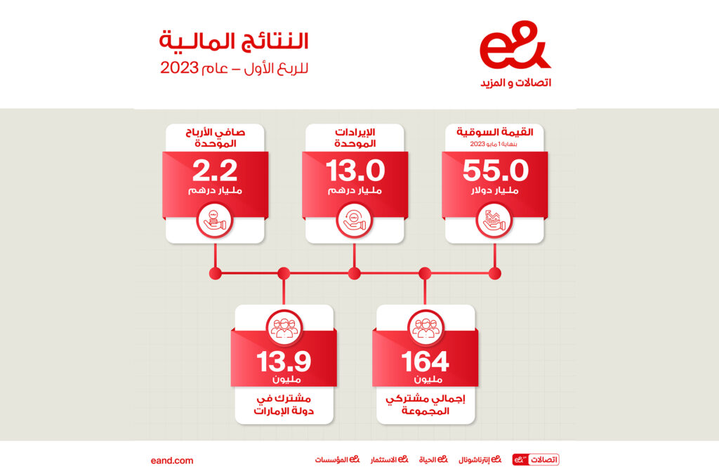 13.0 مليار درهم الإيرادات الموحَّدة لـ &e خلال الربع الأول من عام 2023