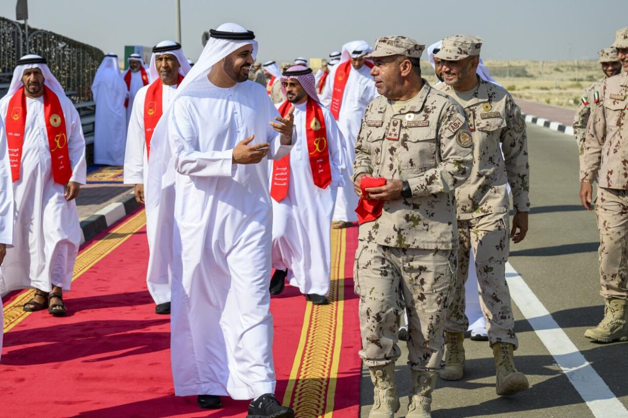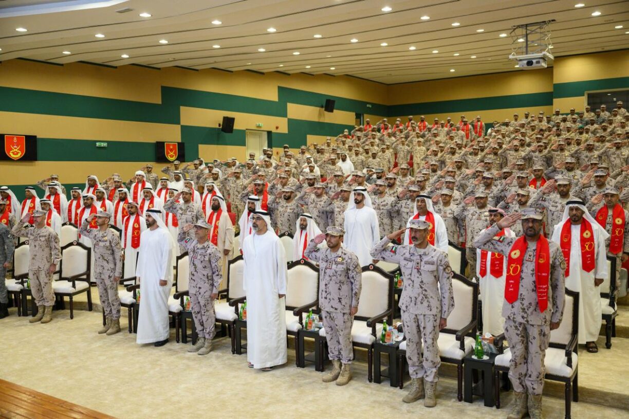 أبوظبي، 10 نوفمبر 2023: شهد سموّ الشيخ خالد بن محمد بن زايد آل نهيان، ولي عهد أبوظبي رئيس المجلس التنفيذي لإمارة أبوظبي، اليوم، احتفال قيادة القوات البرية باليوبيل الذهبي لتأسيس مدرسة المشاة، وتخريج ثلاث دورات قادة فصائل مشاة آلي للضبّاط بمعهد القوات البرية في أبوظبي.