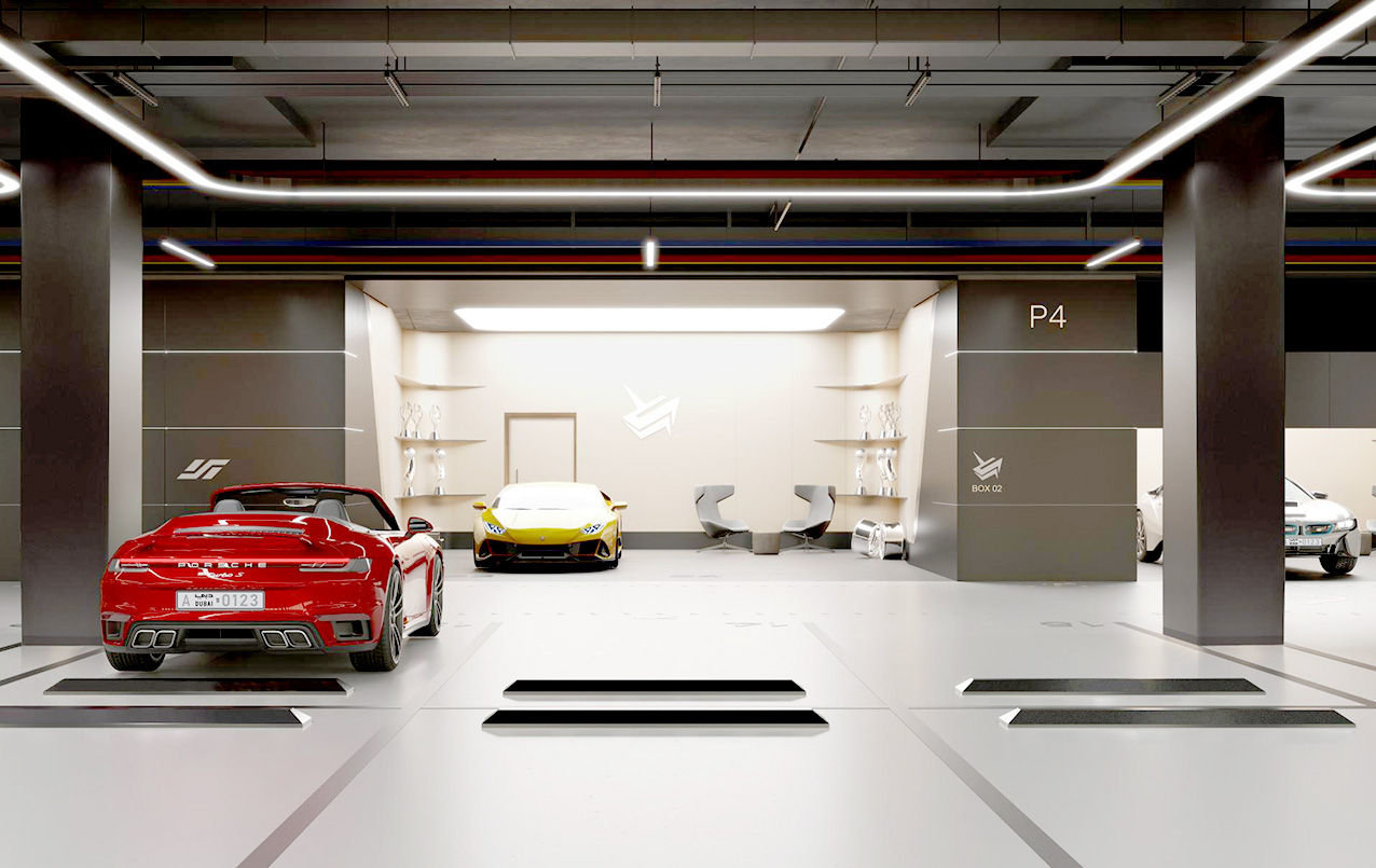 نظراً للطبيعية المناخية الحارة في المنطقة، تم تجهيز كل موقف سيارات حصري بمدخل منفصل يتصل بردهة المصعد وآلية تكييف متطورة. يعزز هذا التصميم من راحة السكان ويحافظ على سلامة السيارات من خلال توفير بيئة مثالية يمكن التحكم في درجة حرارتها. تتفرّد مواقف السيارات في برج “آيكونيك” بلمسات نهائية مميزة وتصميم رياضي بسيط. بالإضافة إلى ذلك، ترتقي اللمسات المعدنية الأنيقة باللون الفضي والذهبي الخافت، إلى جانب الإضاءة الهادئة، بشكل جميل من معالم البرج الفاخر الذي صممته “بينينفارينا”، شركة الهندسة المعمارية الإيطالية الشهيرة، بالتعاون مع ميريد.