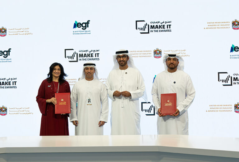 20 مايو 2025 – أبوظبي، الإمارات العربية المتحدة – وقّعت وزارة الصناعة والتكنولوجيا المتقدمة وصندوق الإمارات للنمو اليوم مذكرة تفاهم استراتيجية، وذلك على هامش منتدى “اصنع في الإمارات 2025”. يمثل صندوق الإمارات للنمو المدعوم بمصرف الإمارات للتنمية، منصة نوعية للنمو بقيمة مليار درهم وأداه استراتيجية لدعم الشركات الصغيرة والمتوسطة في الدولة وتمكينها من تحقيق نمو فعال ومستدام.
